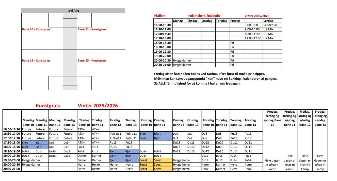 Det er meget vigtigt for os at pointere, at ingen hold er sikret samme træningsdag eller tidsrum i vintertræningsplanen, som de har i sommertræningsplanen. Det er ikke altid muligt at vi kan tilgodese alle holds ønsker. Men vi gør hvad vi kan, for at alle hold fortsætter med de træningsdage og tider de er vant til.